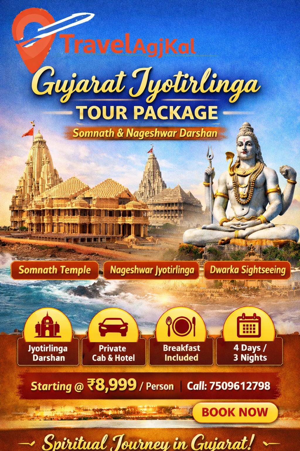 Plan your divine journey with Travel Aajkal and get the best deals on Gujarat Jyotirlinga tour packages.