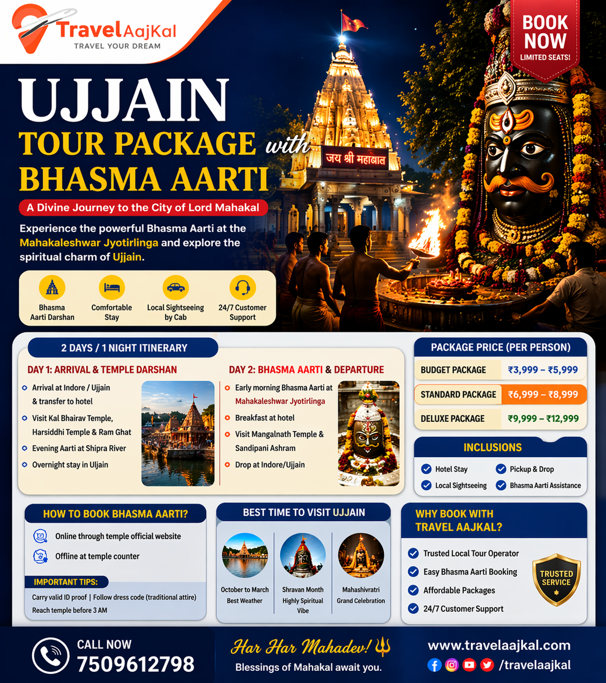 This blog will guide you through the best Ujjain tour package with Bhasma Aarti booking, itinerary, cost, and travel tips.